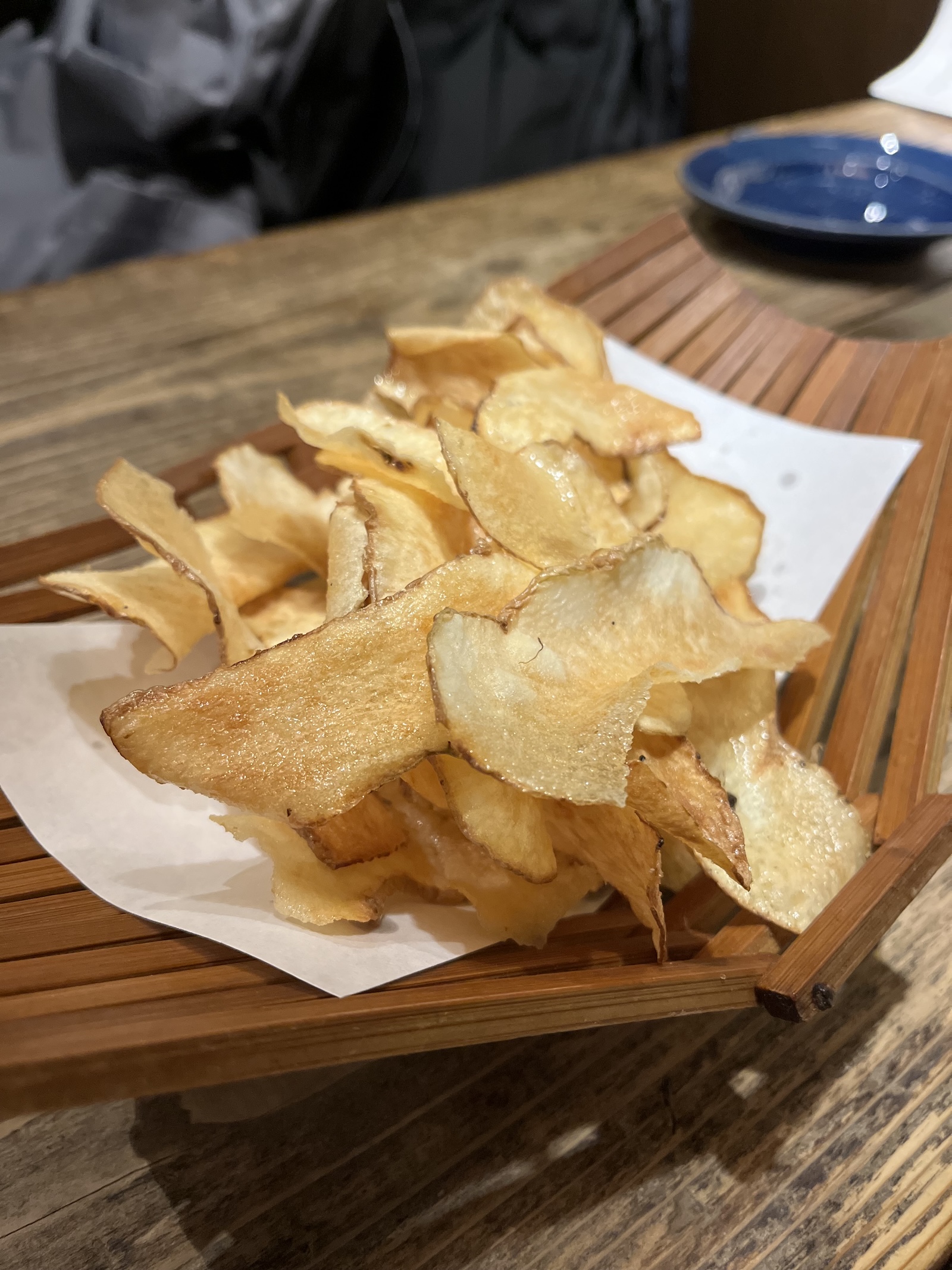 懇親会に参加できなかったので、会社の同僚と食事しました。山芋のチップスがうまかった!