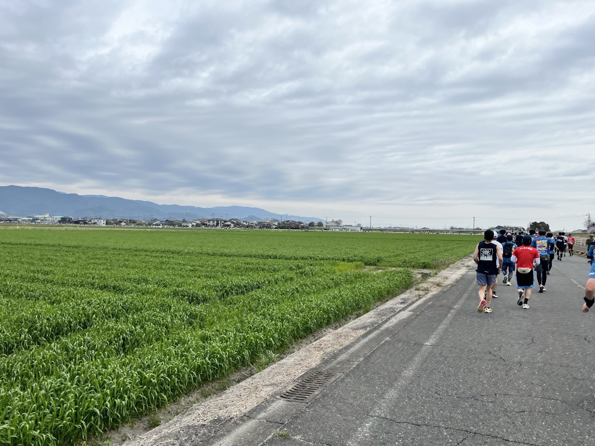 遠くまで見える田園風景は余裕があれば気持ちいいのだが、足が痛い状況下では長い先の道のりが見えてキツかった…練習不足というのもある。